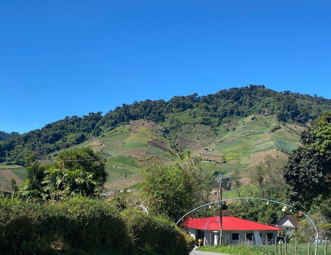 The major crops I saw were bananas and plantains, sugarcane, and coffee, along with a fair amount of corn. At roadside stands people were selling mainly pineapples, melons, citrus, and yucca; pickup trucks loaded with watermelons were a common sight. There were a lot of coconuts around, but I didn’t see anyone farming them; the trees are ubiquitous in the lowlands. In Cerro Punta there are major commercial vegetable operations growing onions, carrots, celery, kale, and other crops, often on steep slopes that have to be tended by hand. I also found potted flowers being produced in Cerro Punta, and I believe the area is suitable for cut flower production.